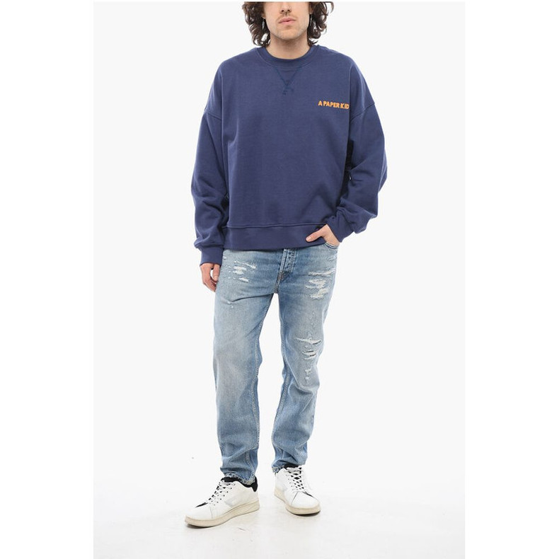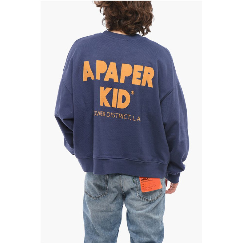 A Paper Kid Brushed Cotton Crew-neck Sweatshirt with Maxi Back Print