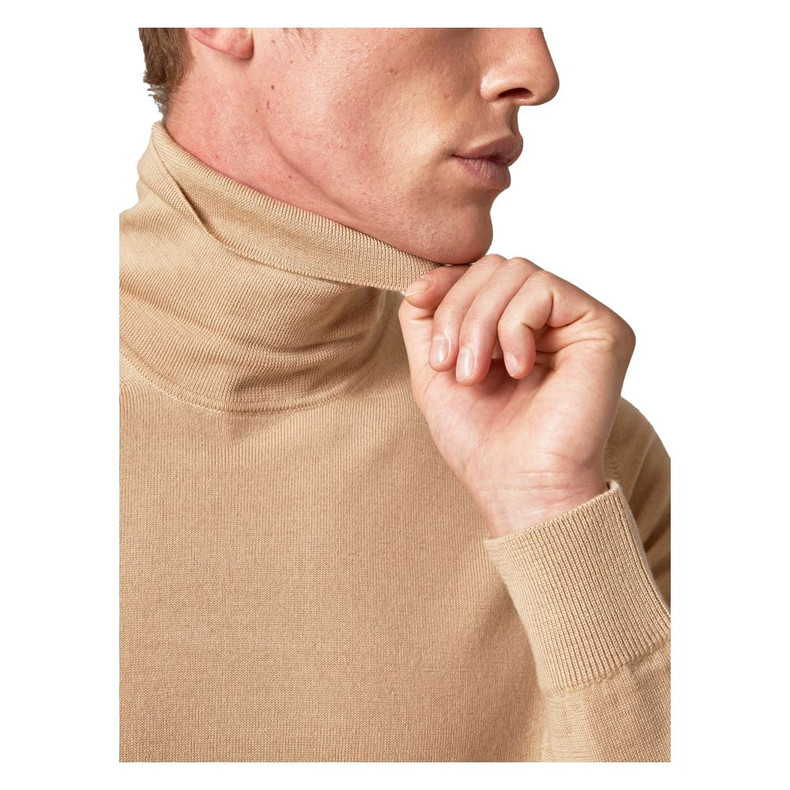Alpha Studio cashmere turtleneck sweater with ribbed embroidery on neck, cuffs, and hem