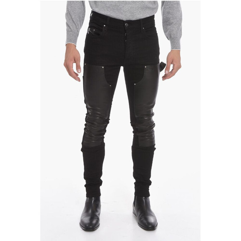 Amiri Stretchy WORKMAN Skinny Denims with Leather Detailing 16cm