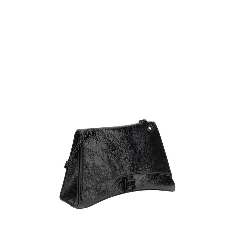The Crush leather crinkle effect Shoulder Bag by Balenciaga is an elegant and distinctive accessory, perfect for completing refined and contemporary looks. The minimalist design is enhanced by the chain shoulder strap and front closure with magnetic flap, enriched by the iconic applied B logo, which adds a touch of luxury and recognition. The curved base gives the model a modern and sophisticated silhouette, while the large interior compartment ensures practicality and space for essentials.