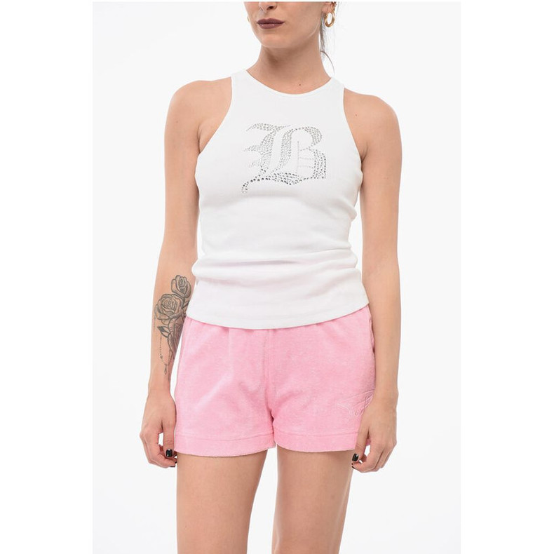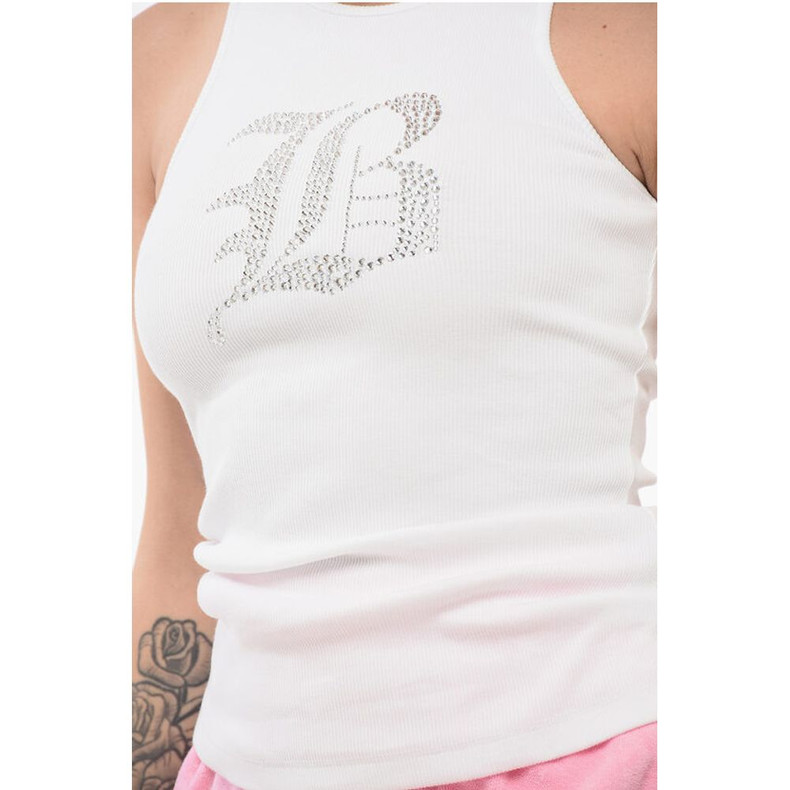 Blumarine Ribbed Tank Top with Rhinestoned Logo