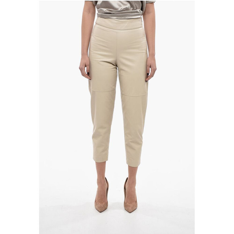 Brunello Cucinelli High-waisted Leather Pants with Side Zip