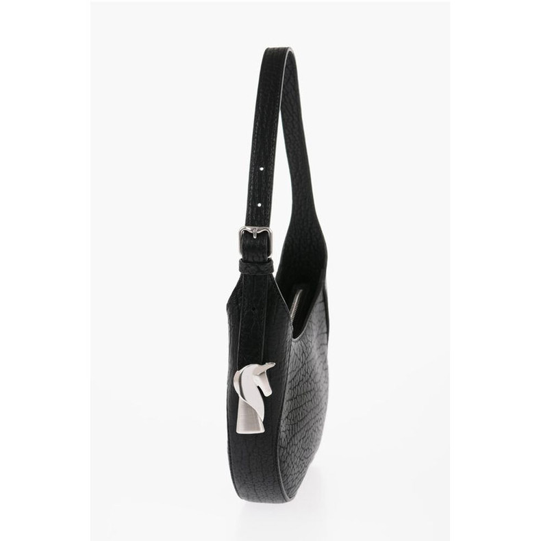 Burberry Textured Leather CHESS BAGUETTE Shoulder Bag with Silver-Ton