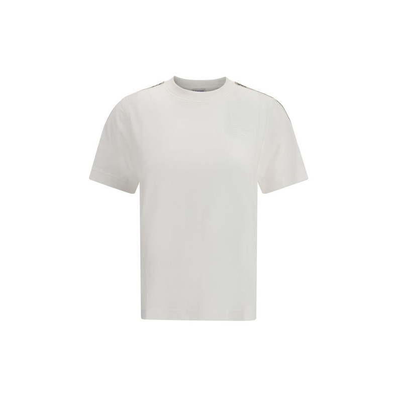 Burberry’s cotton T-Shirt combines essentiality with iconic nods to the brand’s DNA. Made from high-quality cotton, it features a ribbed crew neck and the iconic Archivio Check bands applied along the shoulders. The look is completed with elegant tone-on-tone embroidery of the Equestrian Knight logo on the chest, the brand’s distinctive symbol.