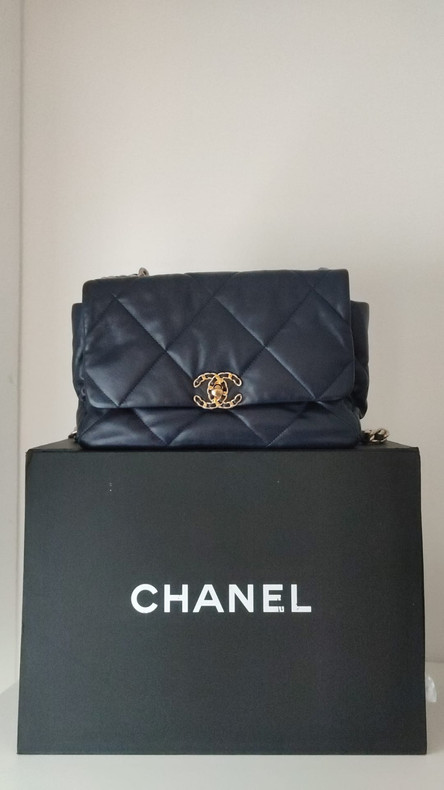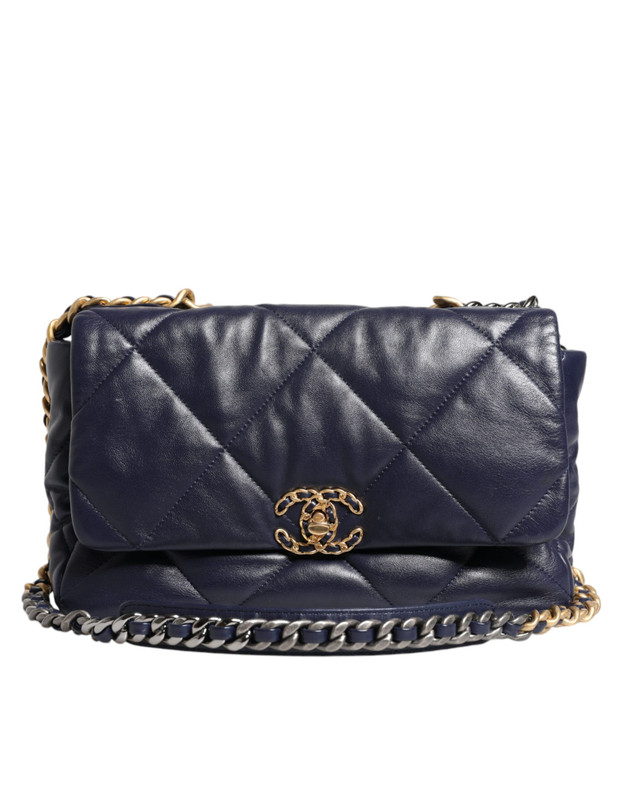 This Chanel Bag Purse 19 2WAY Chain Hand Shoulder Blue Leather Large Quilted Serie 31.