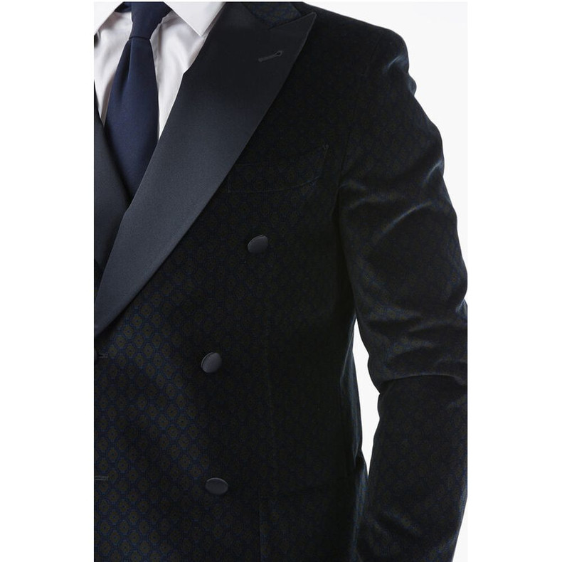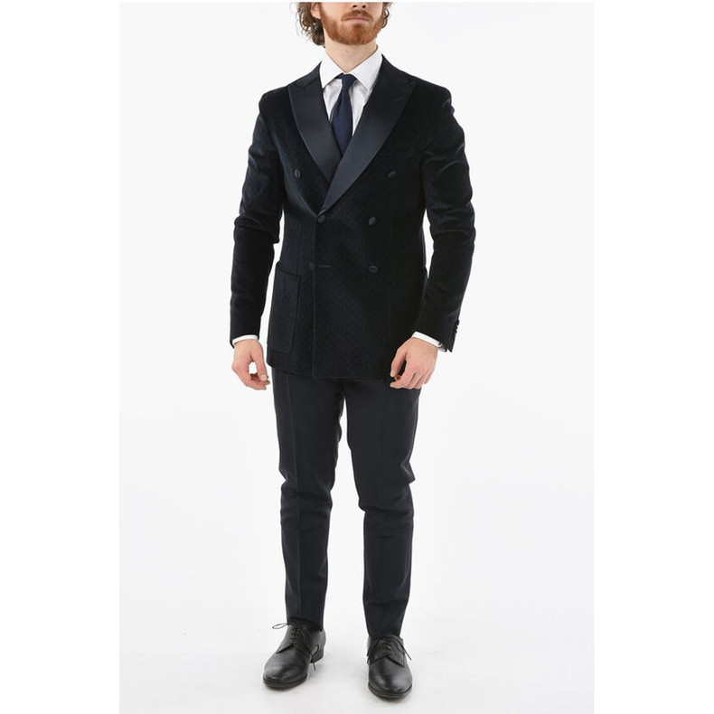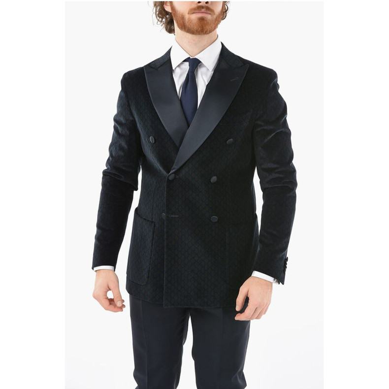 Corneliani CC COLLECTION patterned velour center vent peak lapel double