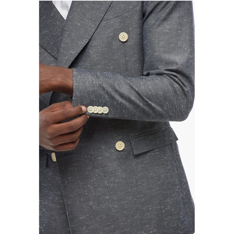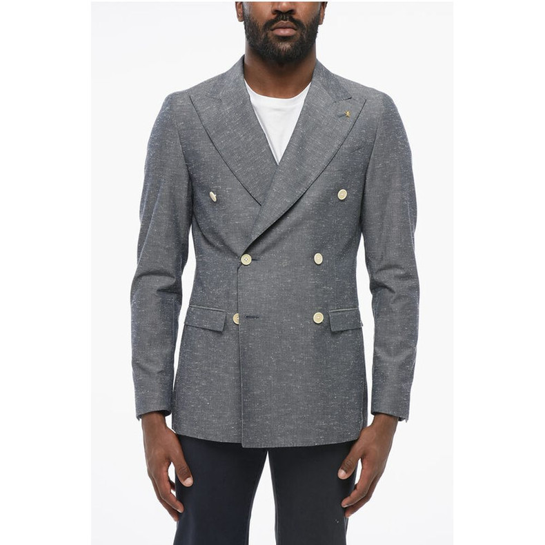 Corneliani CC COLLECTION Side Vents Peak Lapel Double Breasted Blazer