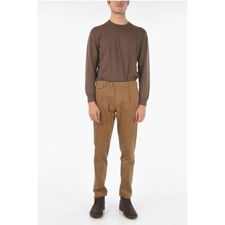 Cruna Herringbone RAVAL1P.L.603 Single Pleated Chino Pants