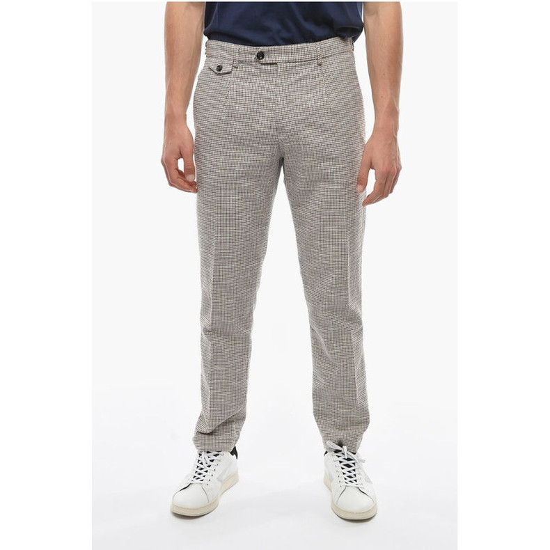 Cruna Houndstooth Motif RAVAL Single Pleat Pants with Breast Pocke