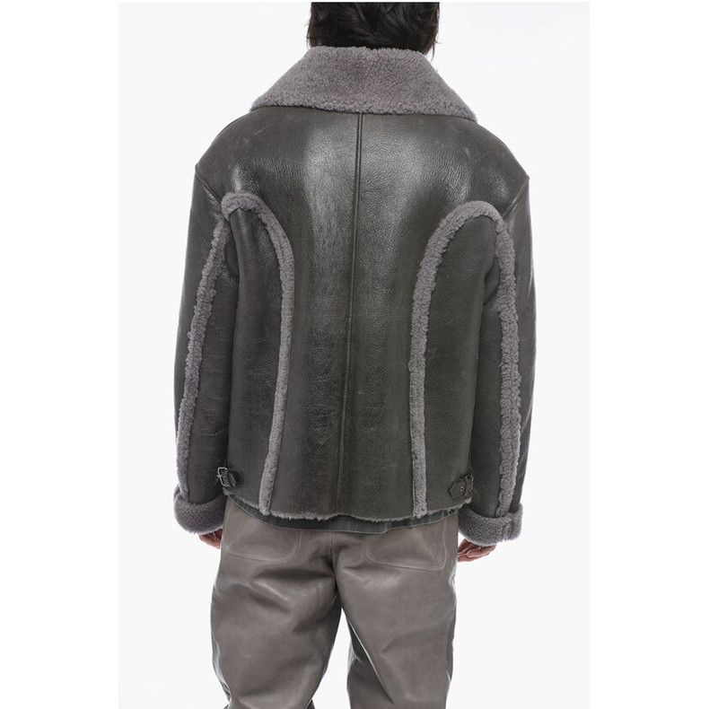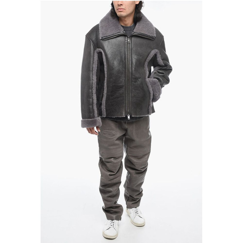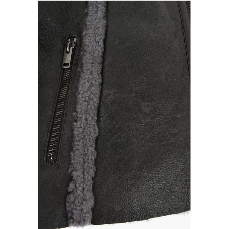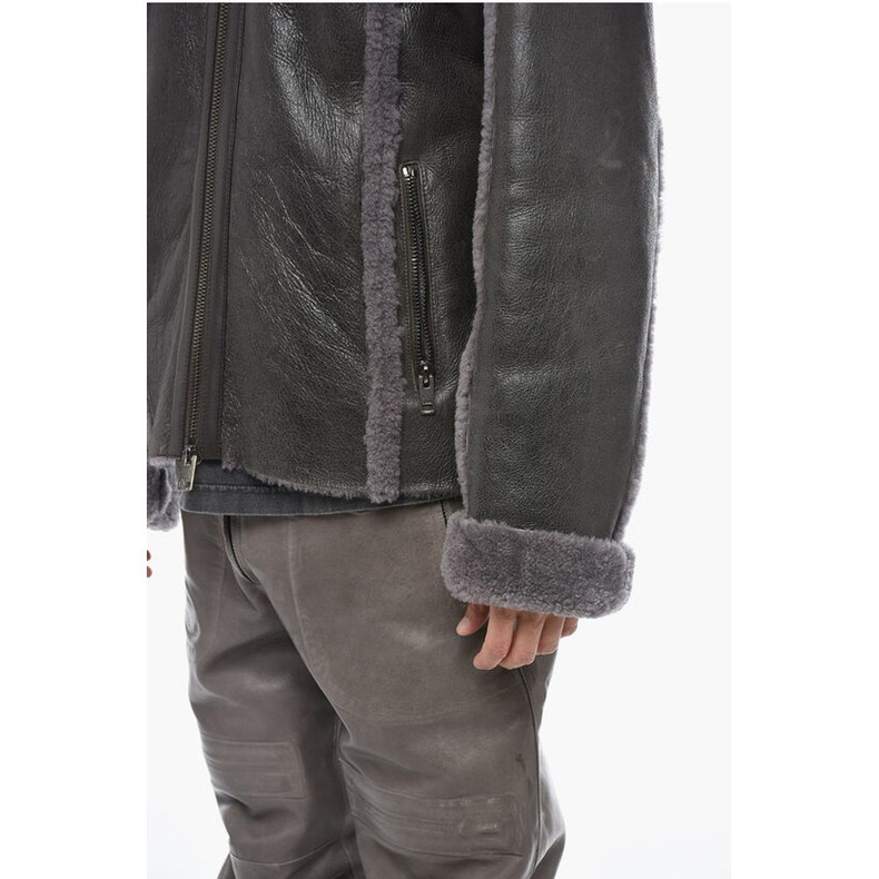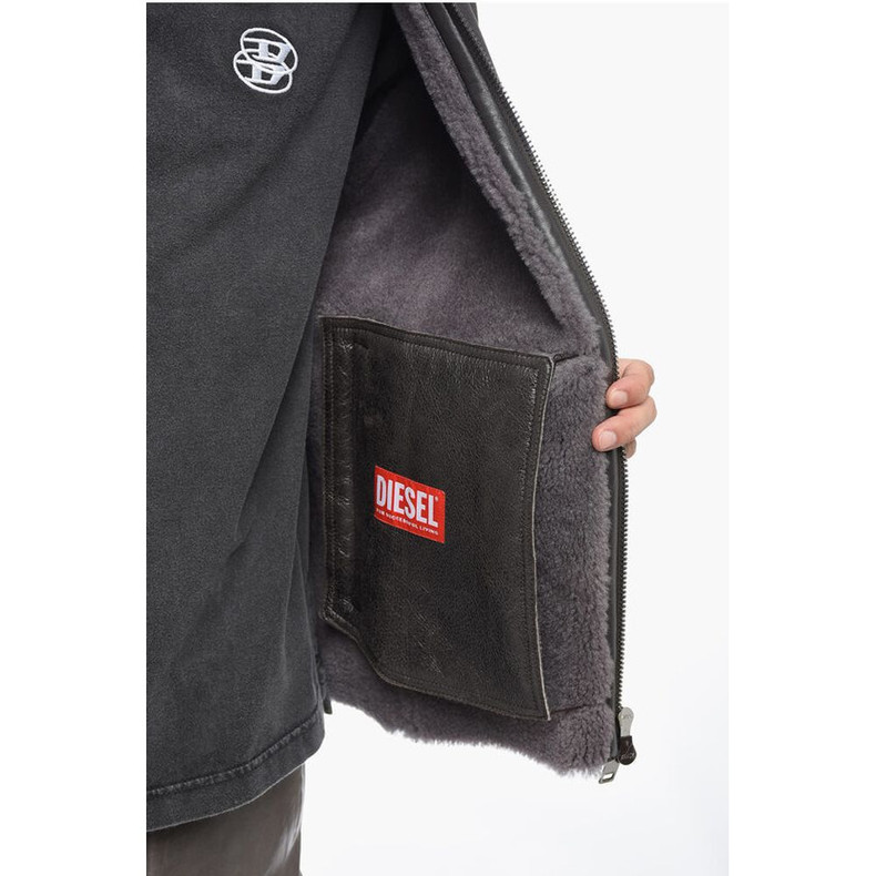 Diesel Vintage Effect Leather L-BROWNY Oversized Jacket with Fur De