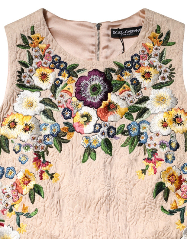 Dolce & Gabbana Beige Floral Embroidery Sleeveless Tank Top