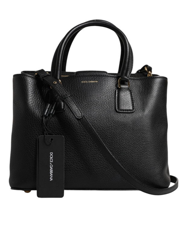 Dolce & Gabbana Black Calf Leather Logo Plaque Shoulder Handbag Bag