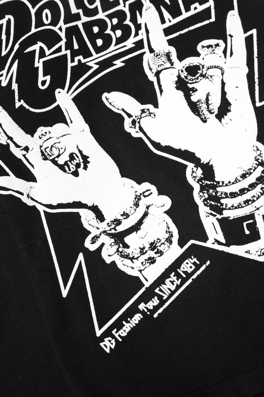 Dolce & Gabbana Black Cotton Printed Short Sleeves T-shirt