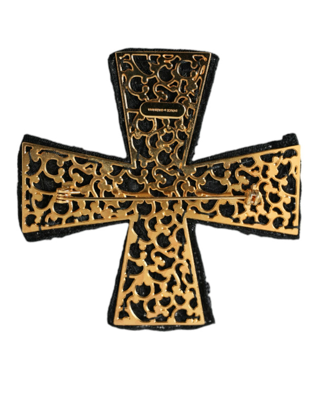 Dolce & Gabbana Black Crystals Embellished Cross Pin Brooch