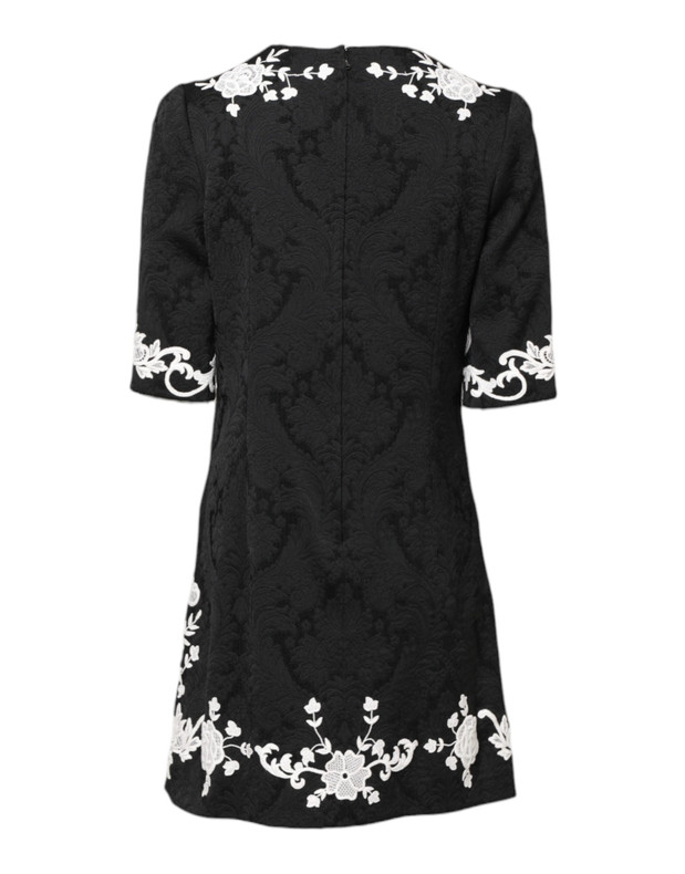 Dolce & Gabbana Black Floral Lace Short Sleeves Mini Dress