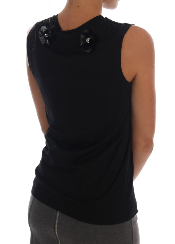Dolce & Gabbana Black Floral Sequined Cami Blouse