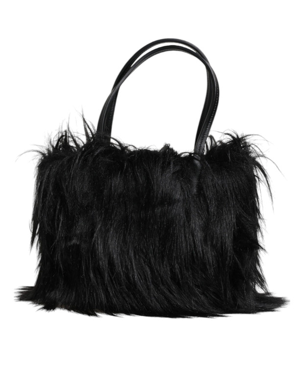 Dolce & Gabbana Black Fur Logo Plaque Double Handle Shoulder Bag