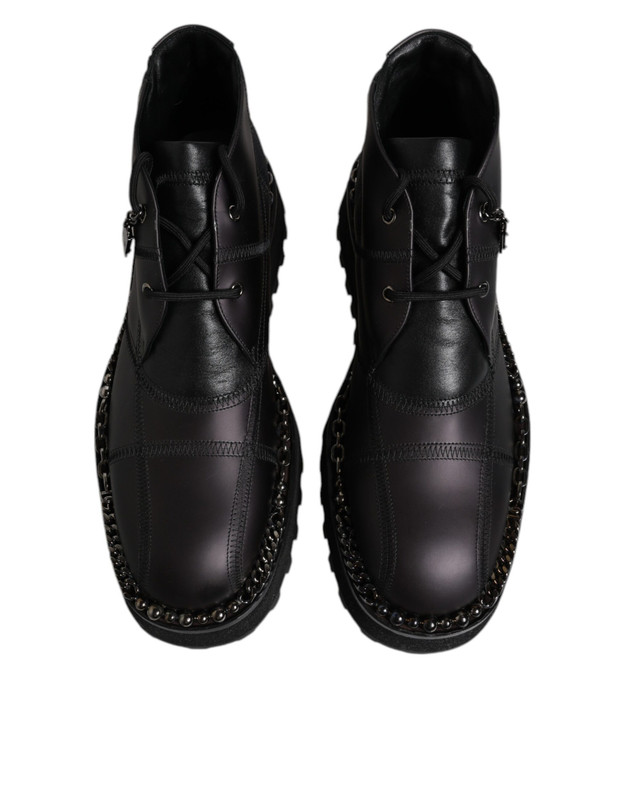 Dolce & Gabbana Black Leather Lace Up Ankle Boots Shoes
