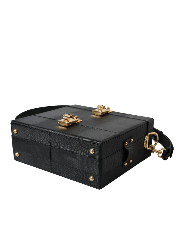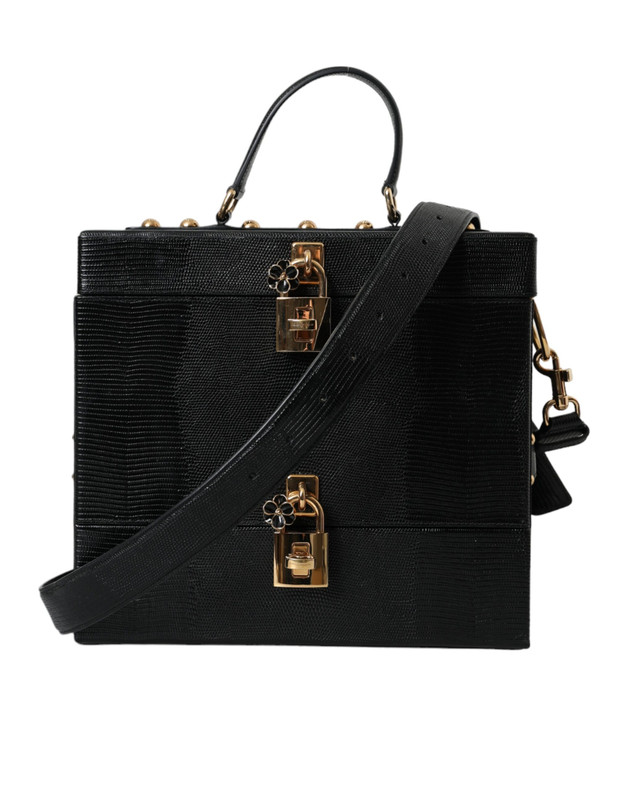 Dolce & Gabbana Black Lizard Embossed Calfskin Leather Double Box Bag