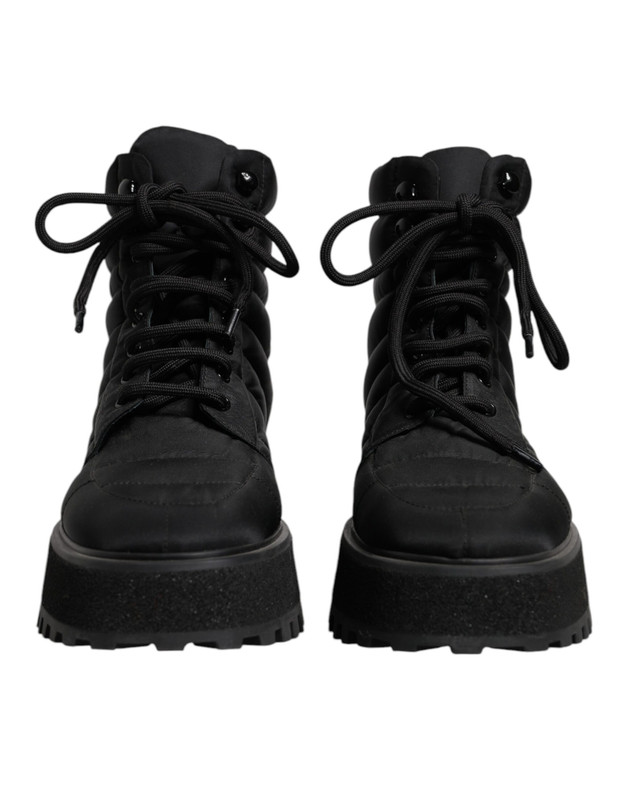 Dolce & Gabbana Black Padded Mid Calf Lace Up Boots Shoes