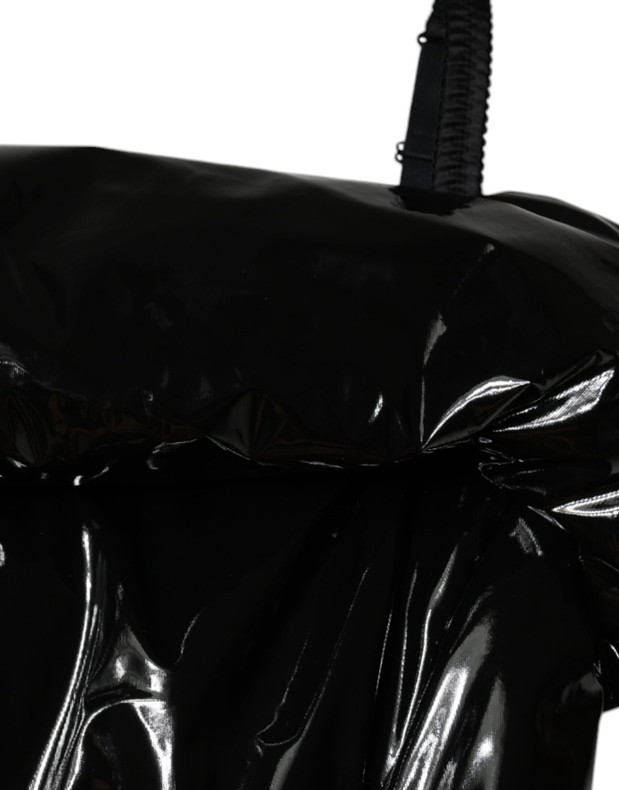 Dolce & Gabbana Black Polyester Ruched Coated Mini Dress