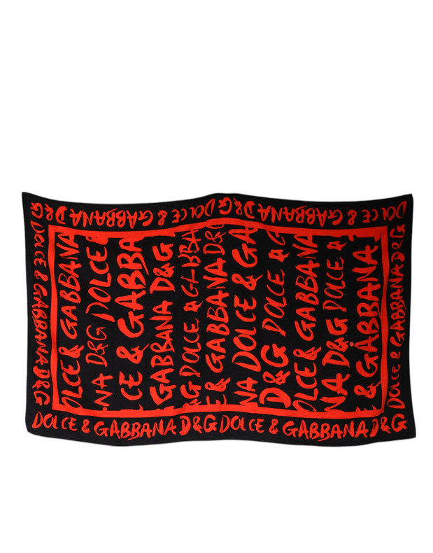 Dolce & Gabbana Black Red Logo Print Cotton Beach Towel