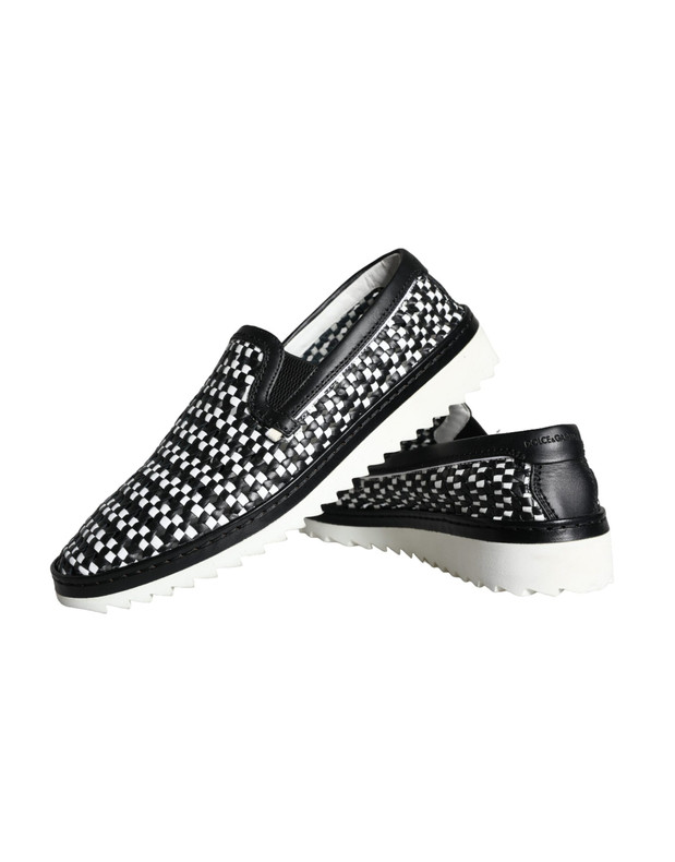 Dolce & Gabbana Black White Weaved Slip On Men Loafers Shoes