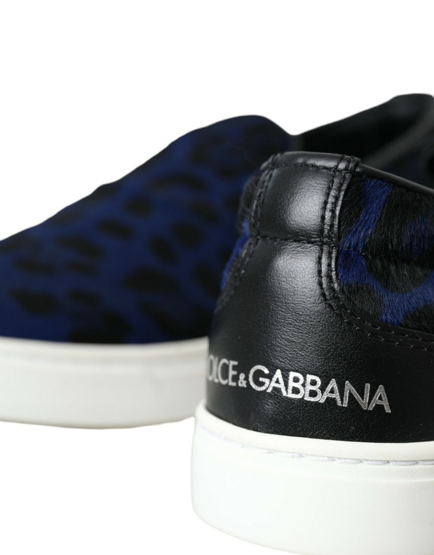 Dolce & Gabbana Blue Calfskin Hair Leopard Sneakers Shoes