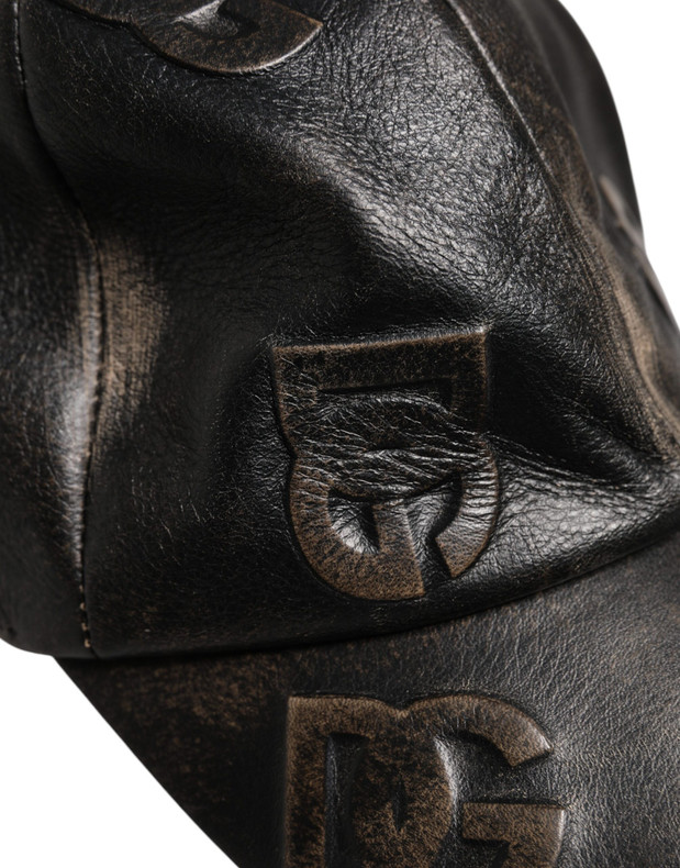 Dolce & Gabbana Brown Leather Logo Monogram Baseball Cap
