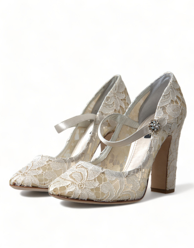 Step into elegance with these exquisite lace sandals by Dolce & Gabbana. Ideal for adding a touch of sophistication to any ensemble, whether it’s a sunny day out or an enchanting evening event. Made in Italy, these Mary Jane Heels sandals blend traditional craftsmanship with modern style, featuring a peep-toe design and comfortable block heels. The delicate beige lace construction in a cream white hue ensures you’ll stand out with every step.