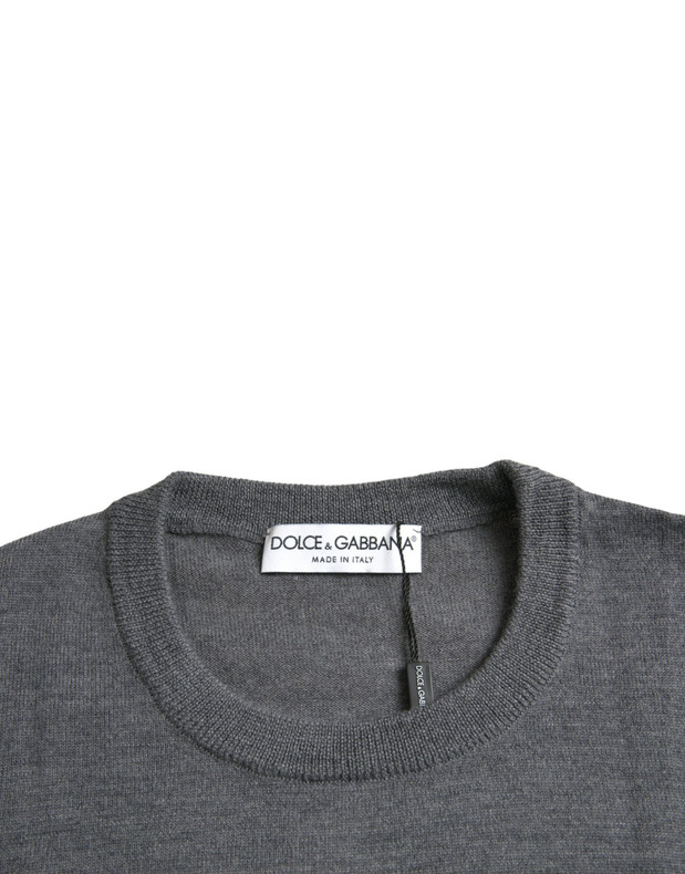 Dolce & Gabbana Dark Gray Wool Crew Neck Pullover Sweater