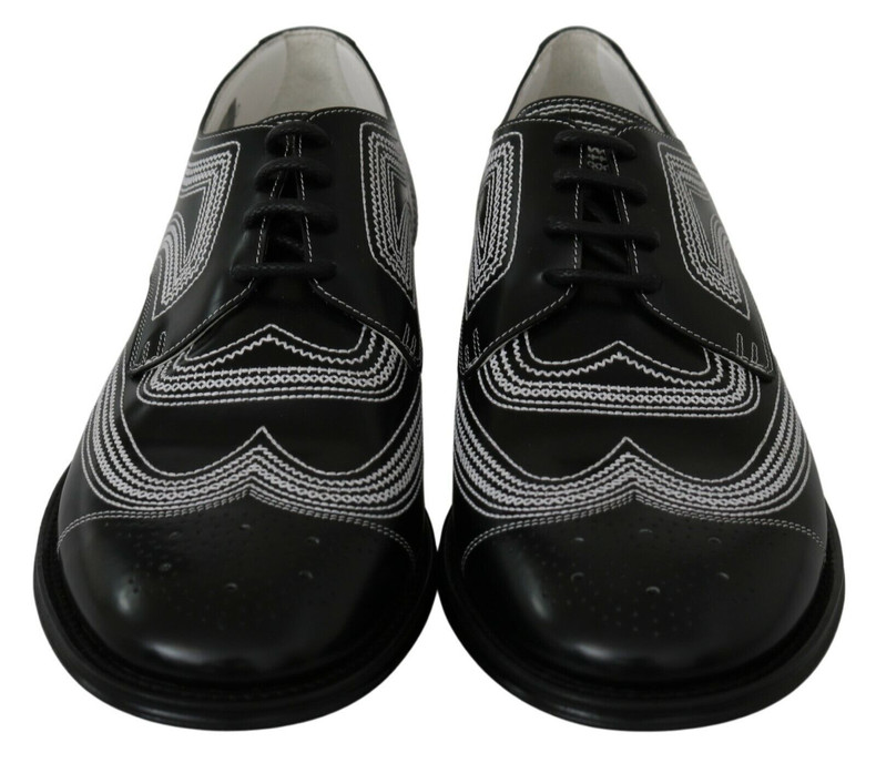 Immerse yourself in the epitome of sophistication with these stunning dress derby shoes, perfect for the discerning gentleman with an eye for classic style and high-end craftsmanship. Designed by the iconic fashion house Dolce & Gabbana, these shoes are a testament to timeless elegance combined with modern luxury. Crafted from the finest leather with a sleek black and white palette, they are certain to elevate any formal ensemble.