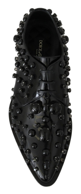 Dolce & Gabbana Elegant Black Crystal Leather Dress Shoes