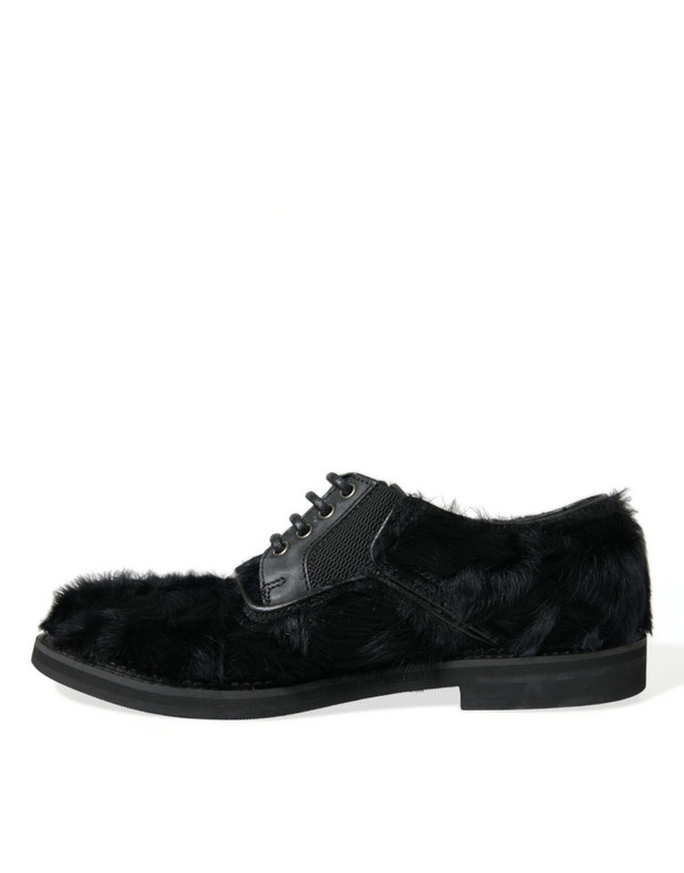 Dolce & Gabbana Elegant Black Fur Derby Dress Shoes for Men