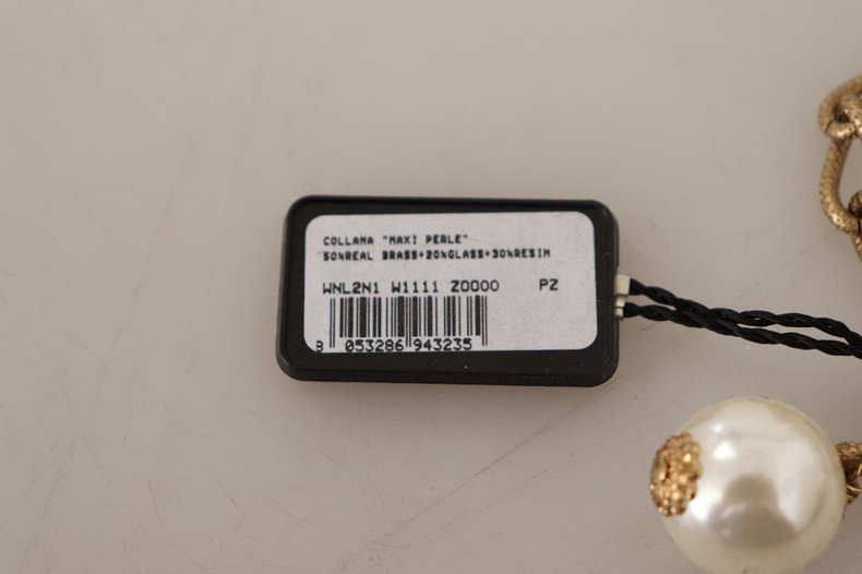 Dolce & Gabbana Elegant Faux Pearl Charm Necklace with Crystal Accents