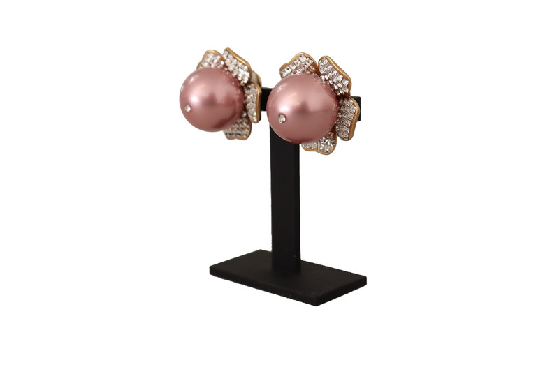 Discover the opulence of Dolce & Gabbana with these entrancing clip-on earrings. Designed for the discerning fashion connoisseur, each earring is a masterpiece, featuring a radiant gold-tone floral motif. Exquisitely adorned with sparkling clear crystals, these earrings are elevated further by the central pink faux pearl, offering a lavish aesthetic that’s simply irresistible.