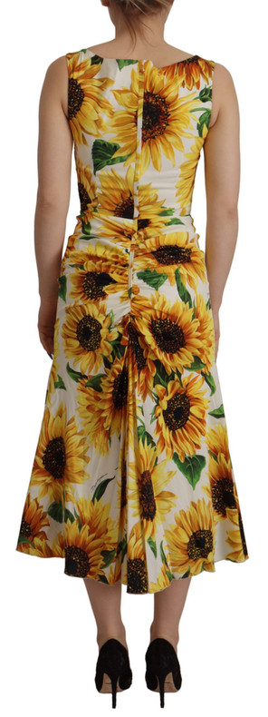 Dolce & Gabbana Elegant White Floral Print Midi Dress