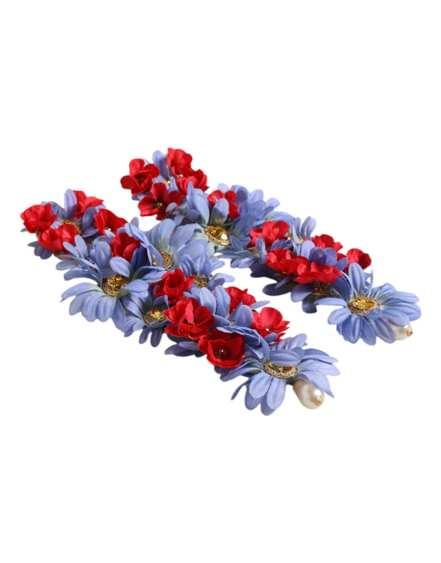 Dolce & Gabbana Gold Tone Brass Floral Crystal Clip On Dangling Earrings