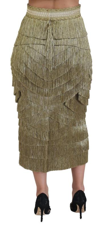 Dolce & Gabbana Golden High Waist Tiered Midi Skirt