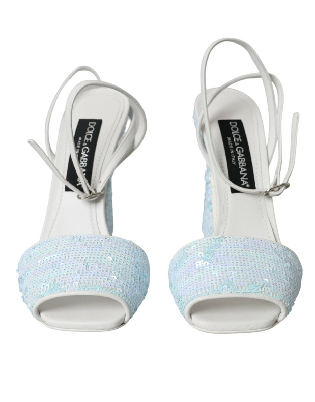 Dolce & Gabbana Light Blue Sequin Ankle Strap Sandals Shoes