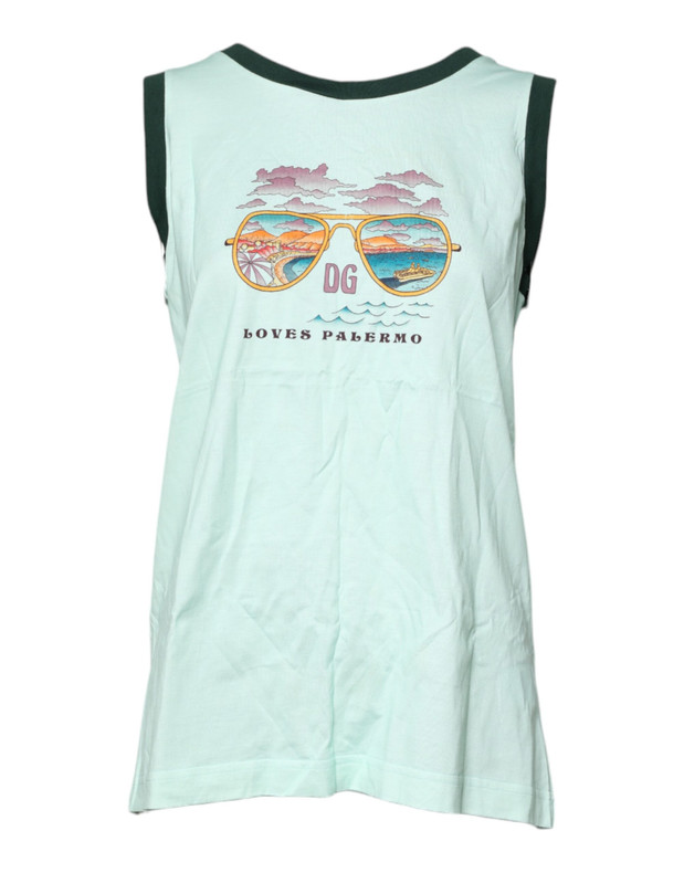 Dolce & Gabbana Light Green Graphic Print Sleeveless Tank T-shirt