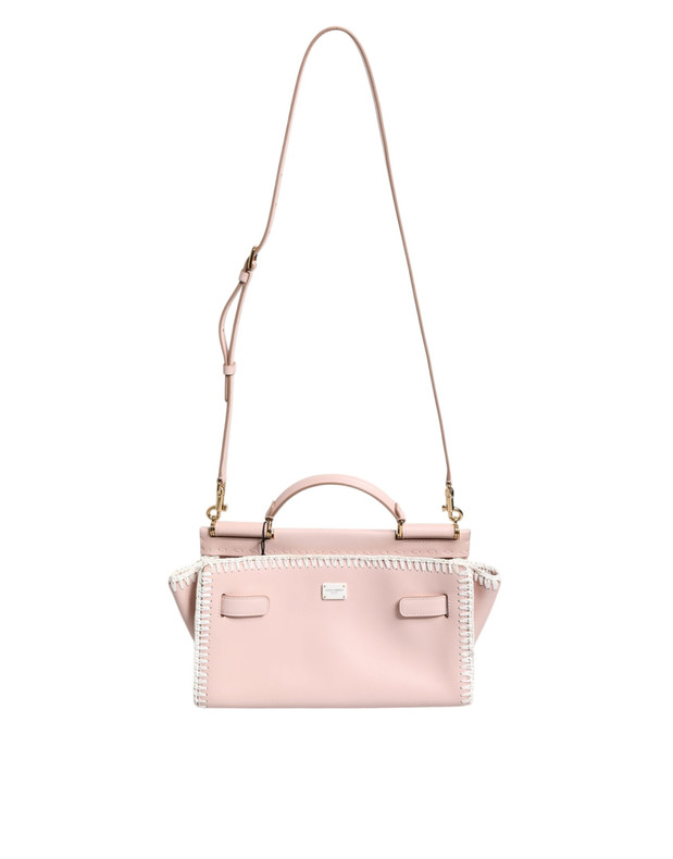 Dolce & Gabbana Light Pink Logo Plaque Soft Leather Strap Crossbody Bag