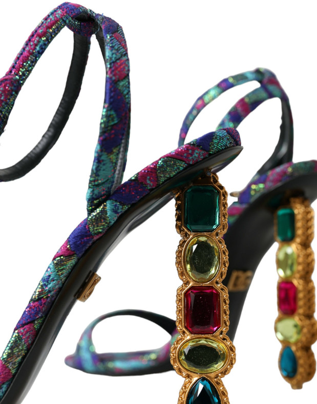 Dolce & Gabbana Multicolor Jacquard Crystals Sandals Shoes