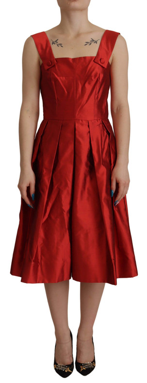 Dolce & Gabbana Radiant Red Silk A-Line Midi Dress