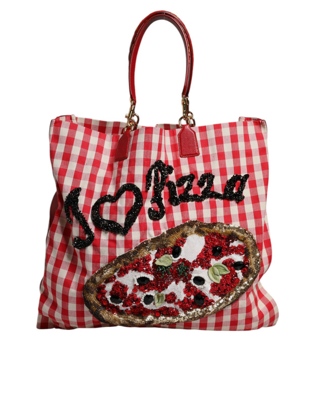 Dolce & Gabbana Red Checkered Embellished Shopping Tote Cotton Bag