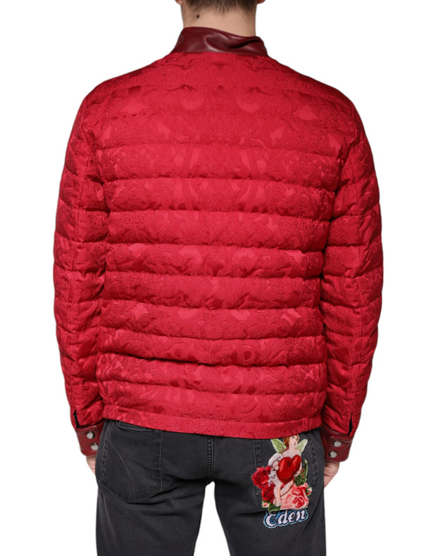 Dolce & Gabbana Red Quilted Bomber Gold Crown Logo Jacket