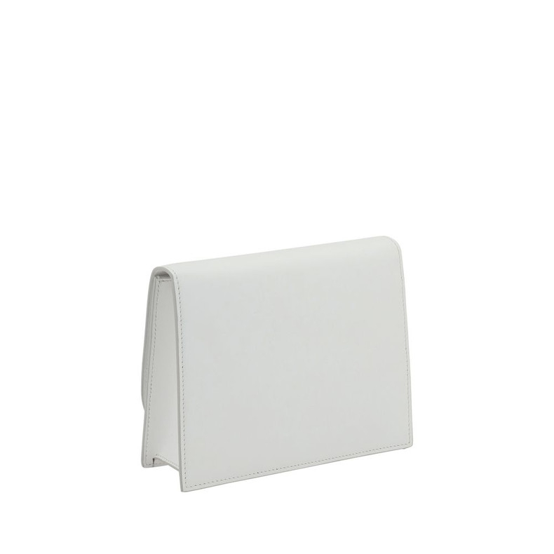 Calfskin Shoulder Bag by Dolce&Gabbana, maxi brand logo on front with tone-on-tone topstitching, front magnetic flap, flat leather shoulder strap, squared design, internal welt pocket.