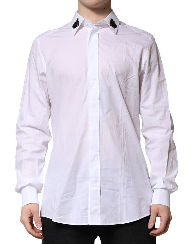 Dolce & Gabbana White Cotton GOLD Mens Dress Formal Shirt