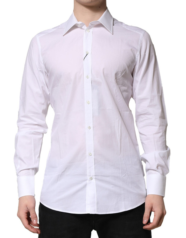 Dolce & Gabbana White Cotton Long Sleeves GOLD Formal Shirt