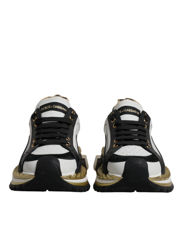 Dolce & Gabbana White Gold Black Leather SUPER KING Sneakers Shoes